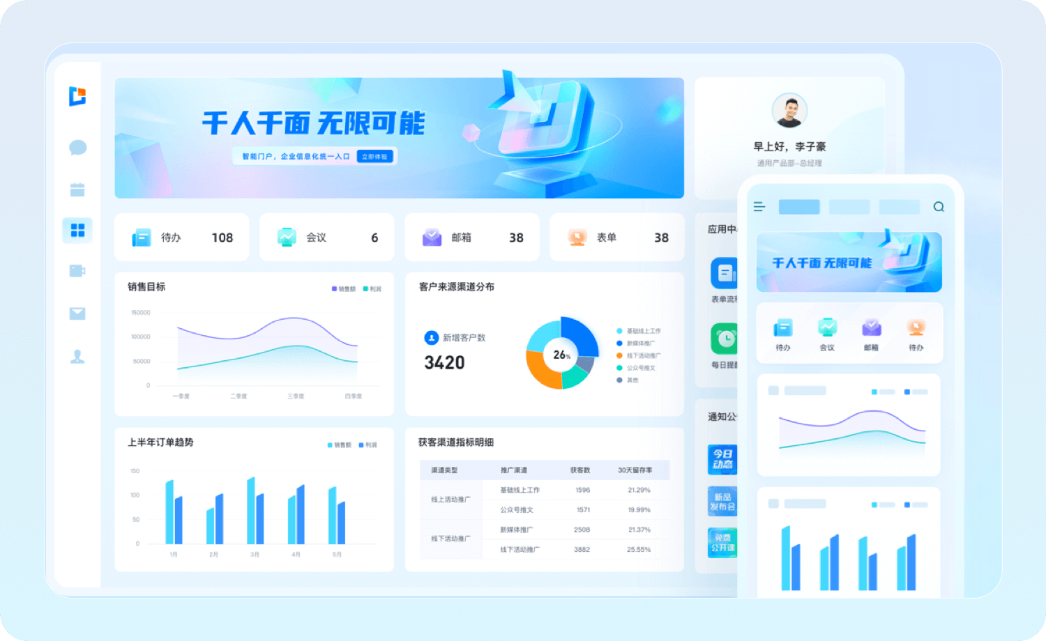 智能门户聚合待办、公告、BI报表等应用,员工单点登录所有系统,待办自动推送,新人轻松上手