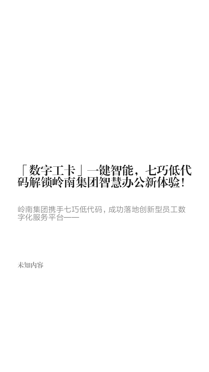 岭南集团与七巧低代码的深度合作,以技术驱动管理革新与生态协同,成功打造了集员工服务、产品创新与营销增长于一体的数字化平台。未来,双方将持续探索数字技术与业务场景的深度融合,通过数据精准赋能员工服务、敏捷优化产品体验、激活全域生态价值,探索国有企业数字化转型的创新模式,在高质量发展主线下,共同书写数字驱动、共生共赢的新篇章。