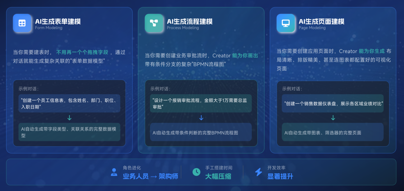 - 技术门槛仍在:生成的代码仍需专业工程师调试,业务负责人看不懂也无法参与,业务与 IT 持续脱节,数字化推进始终绕不开技术依赖;