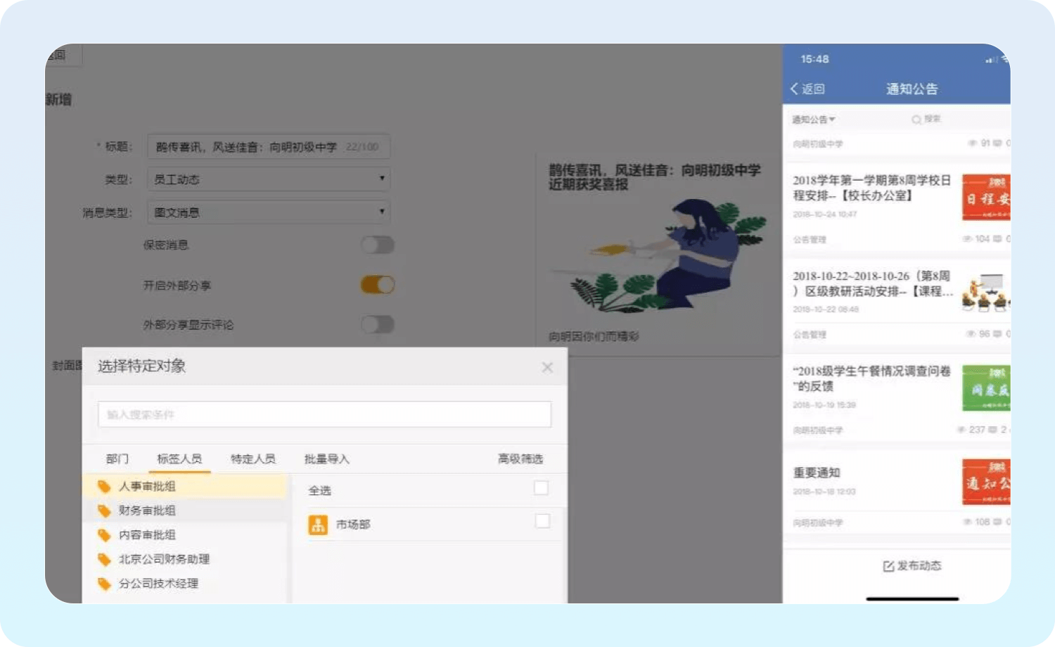 打破传统办公模式,教师只需打开微信企业号,即可随时随地下达通知、收发信息,轻松解决工作任务。