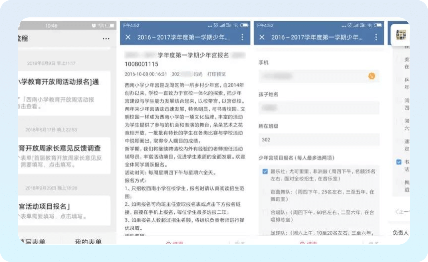 作业通知、缴费提醒等依赖微信群发布,易出现信息遗漏;家长难以及时了解学生在校表现。