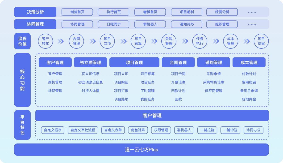 项目进度: 项目在实施过程中需要跨部门多人进行协作导致信息传递失真,内部协同效率低,整体进度不理想影响客户满意度,从而回款困难。