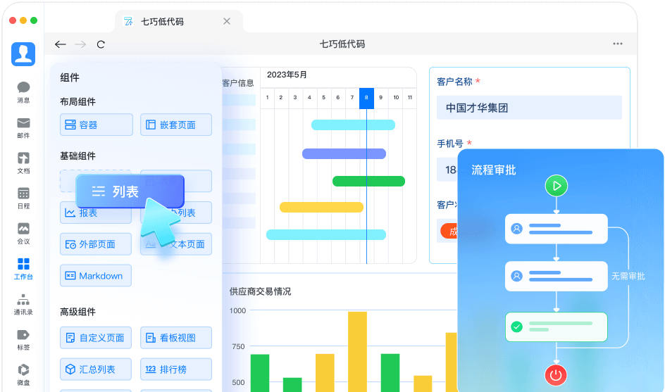 七巧低代码搭建跨部门流程,结合AI算法生成销售预测模型,重构制造业客户管理价值链。