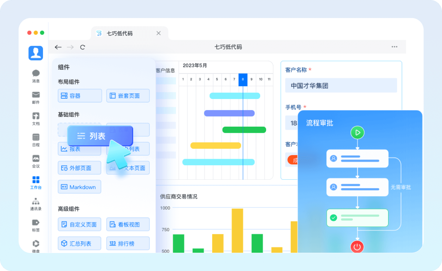 七巧低代码平台通过工具智能化、协同自动化、决策数据化,实现订单 / 库存 / 生产数据实时管理,动态优化销售策略。
